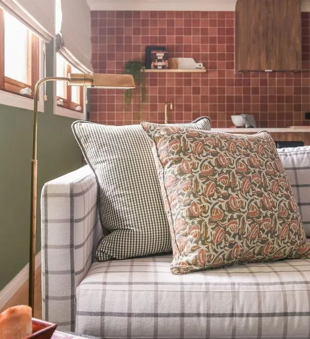 The apartment has a sitting area, and comforts such as an air conditioner and a washing machine.